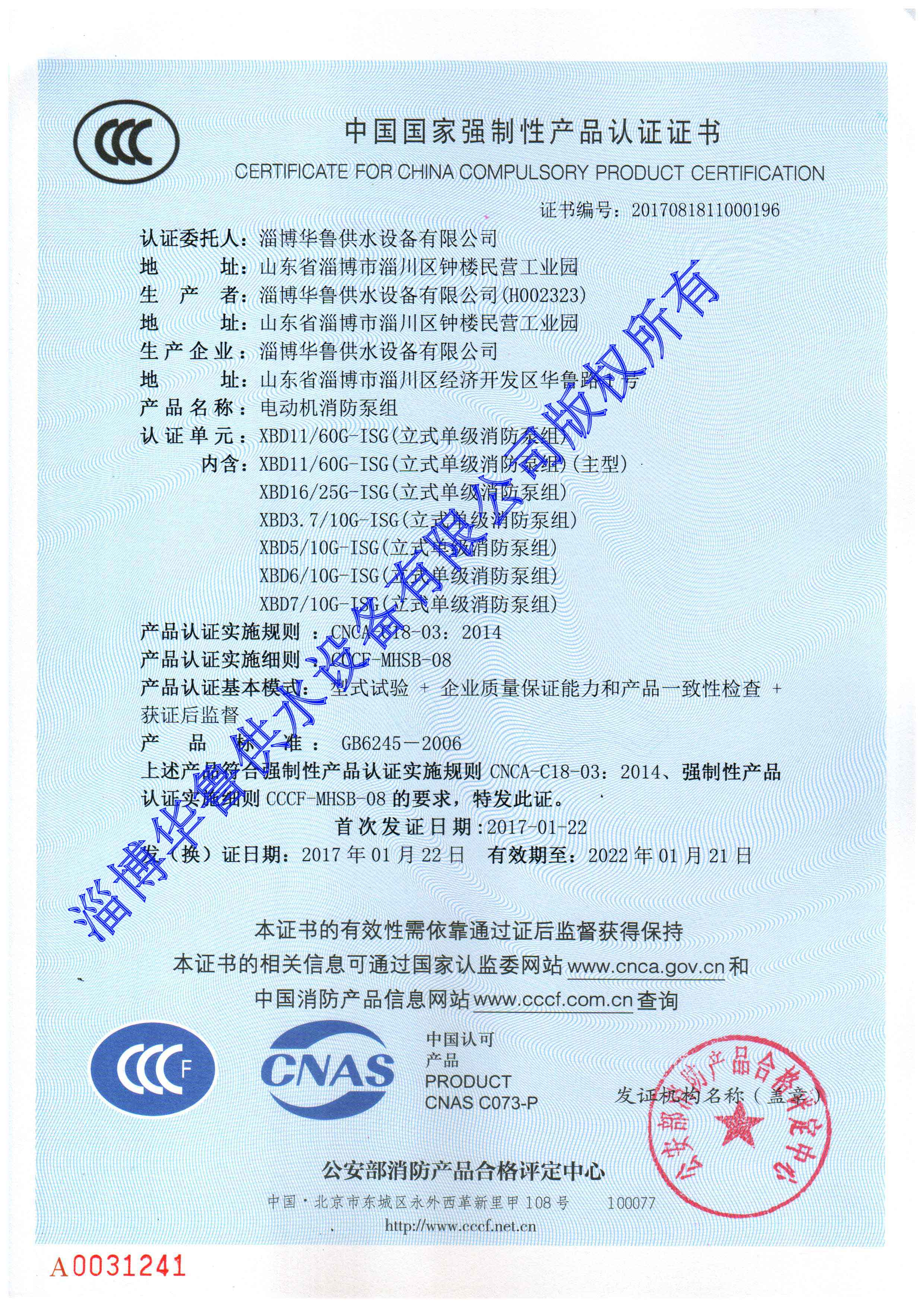 消防增壓穩壓CCC證書(shū) 更多詳情>