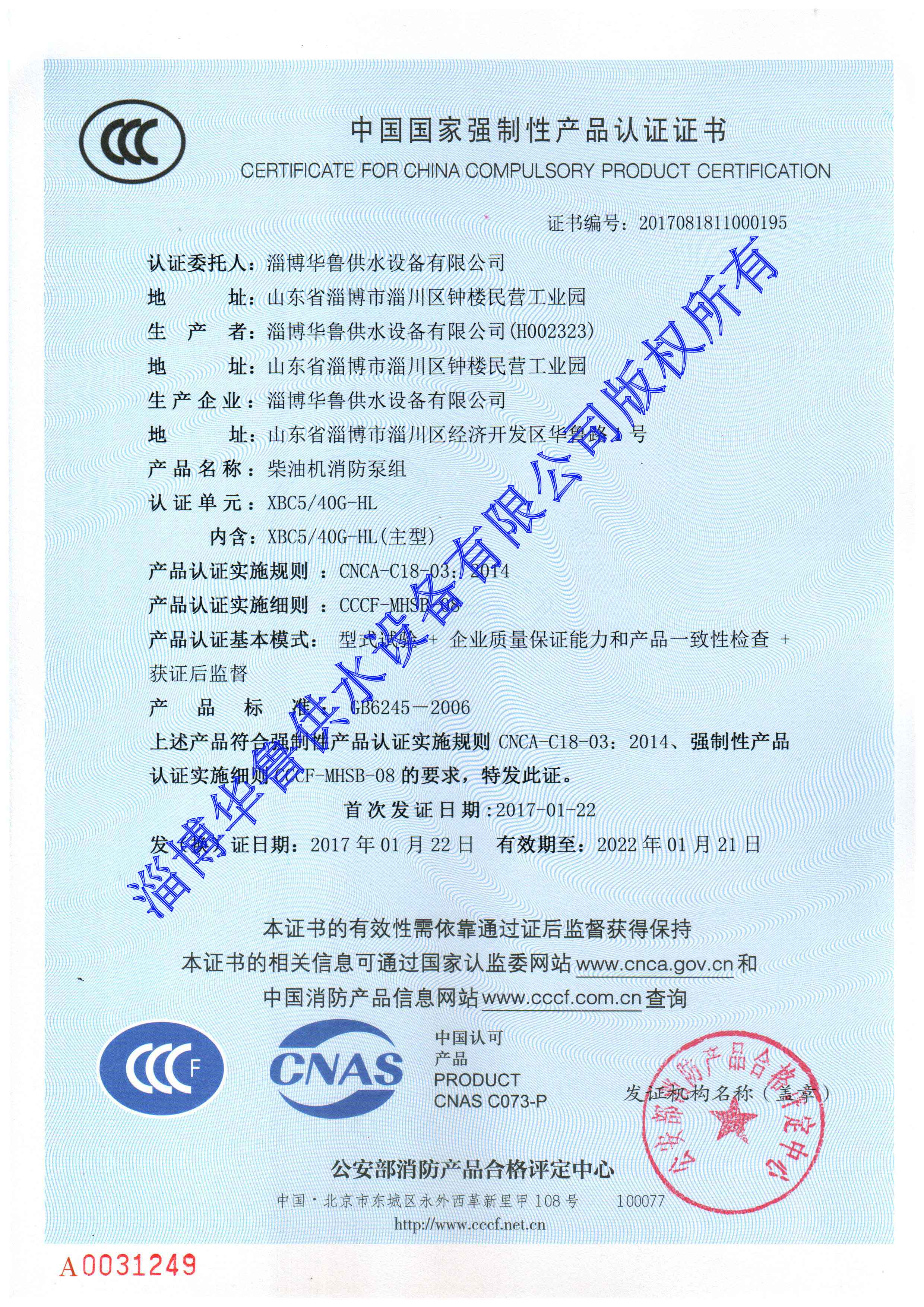 柴油機消防泵CCCF證書(shū) 更多詳情>